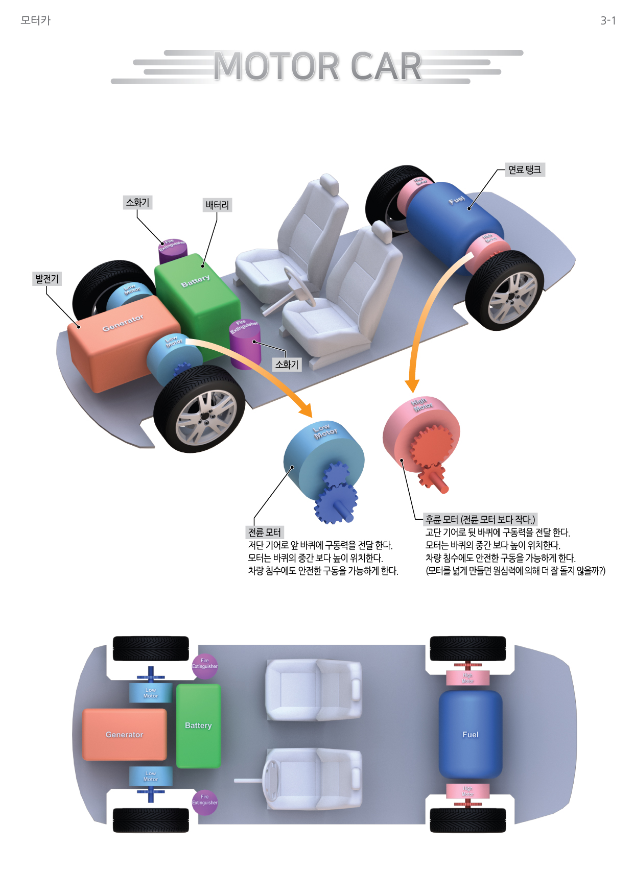 - 전기차처럼 차의 전면에 배터리 충전 단자가 있는 것이 좋겠다. 개인 차고가 있거나 주차장에서 배터리를 충전한다면 배터리 용량은 작지만, 단거리 운행을 주로 할 경우 그로 인해 주유소, 연료 충전소를 가지 않아도 되기 때문에 관리가 편할 것 같다.