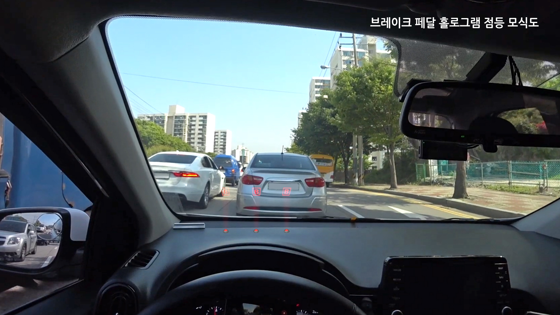 운전석 전면에 3개의 ‘브레이크 페달 홀로그램 점등’을 설계한다.