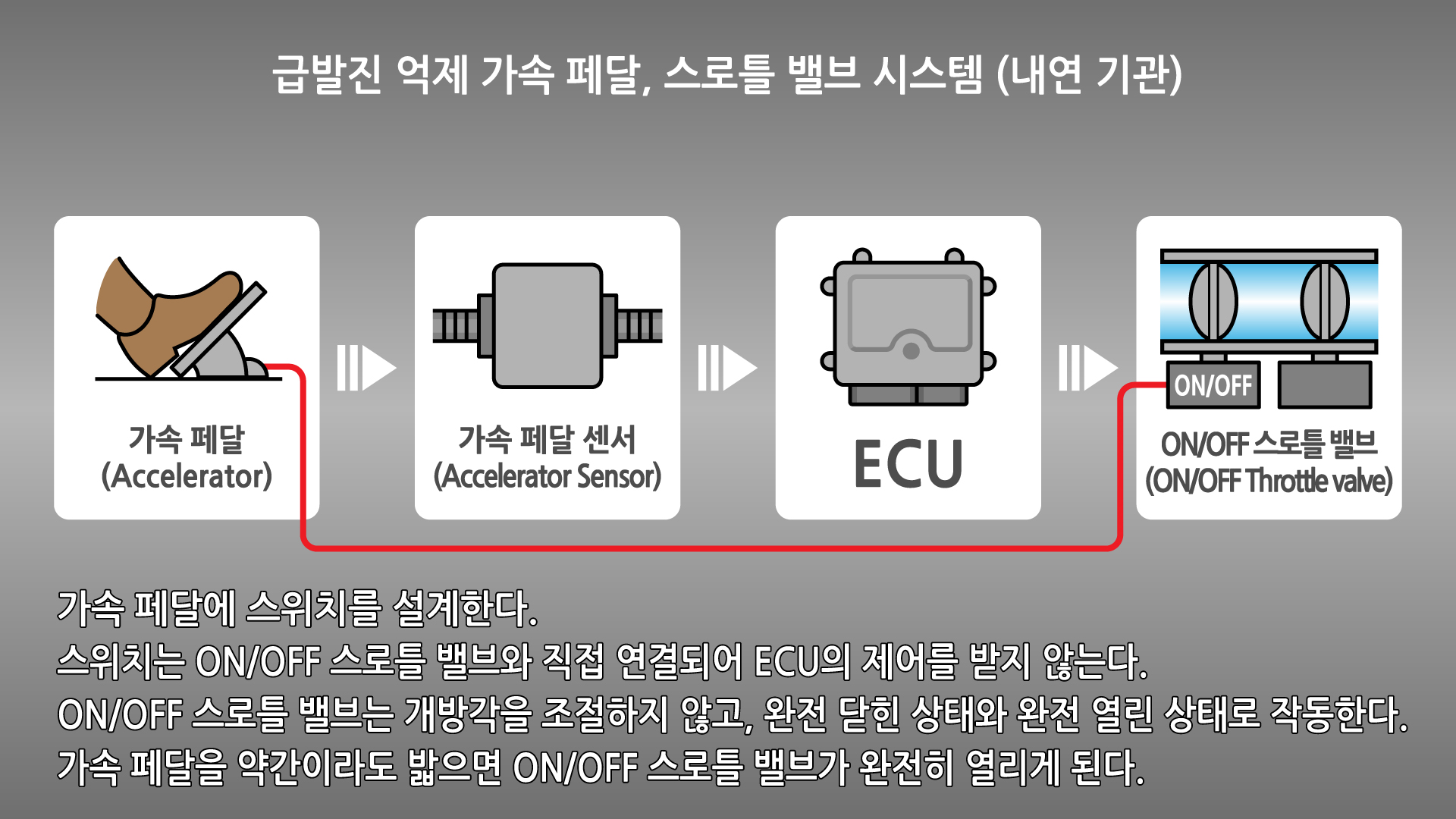 접점부 또는 ECU에서 오류가 생기면 급발진의 위험이 있다.